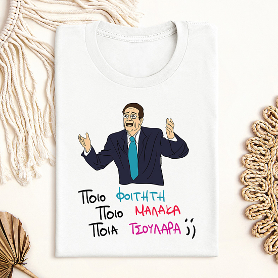T-shirts από vegan οργανικό βαμβάκι με την ατάκα "ΠΟΙΟ ΦΟΙΤΗΤΗ ΠΟΙΟ ΜΑΛΑΚΑ ΠΟΙΑ ΤΣΟΥΛΑΡΑ;;".