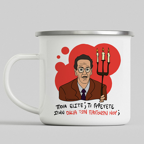 Διάλεξε την κούπα vintage εμαγιέ με σχέδιο "ΠΟΙΑ ΕΙΣΤΕ; ΤΙ ΓΥΡΕΥΕΤΕ ΣΤΗΝ ΟΙΚΙΑ ΤΩΝ ΠΡΟΓΟΝΩΝ ΜΟΥ;" και θα δεις ότι η ανθεκτικότητα της αλλά και το σχέδιο που θα διαλέξεις θα σε συντροφεύει για πολλά χρόνια. Το αγαπημένο σου ρόφημα αξίζει να έχει μια κούπα με στυλ!