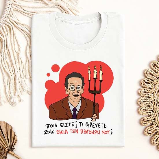 T-shirts από vegan οργανικό βαμβάκι με την ατάκα "ΠΟΙΑ ΕΙΣΤΕ; ΤΙ ΓΥΡΕΥΕΤΕ ΣΤΗΝ ΟΙΚΙΑ ΤΩΝ ΠΡΟΓΟΝΩΝ ΜΟΥ;".