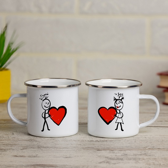 Διάλεξε δύο κούπες vintage εμαγιέ με σχέδιο '' Σ'αγαπώ .... Το ξέρω '' μία για εσένα και μία για τον αγαπημένο σου.