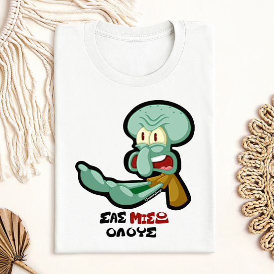 T-shirts από vegan οργανικό βαμβάκι με την ατάκα "ΣΑΣ ΜΙΣΩ ΟΛΟΥΣ".