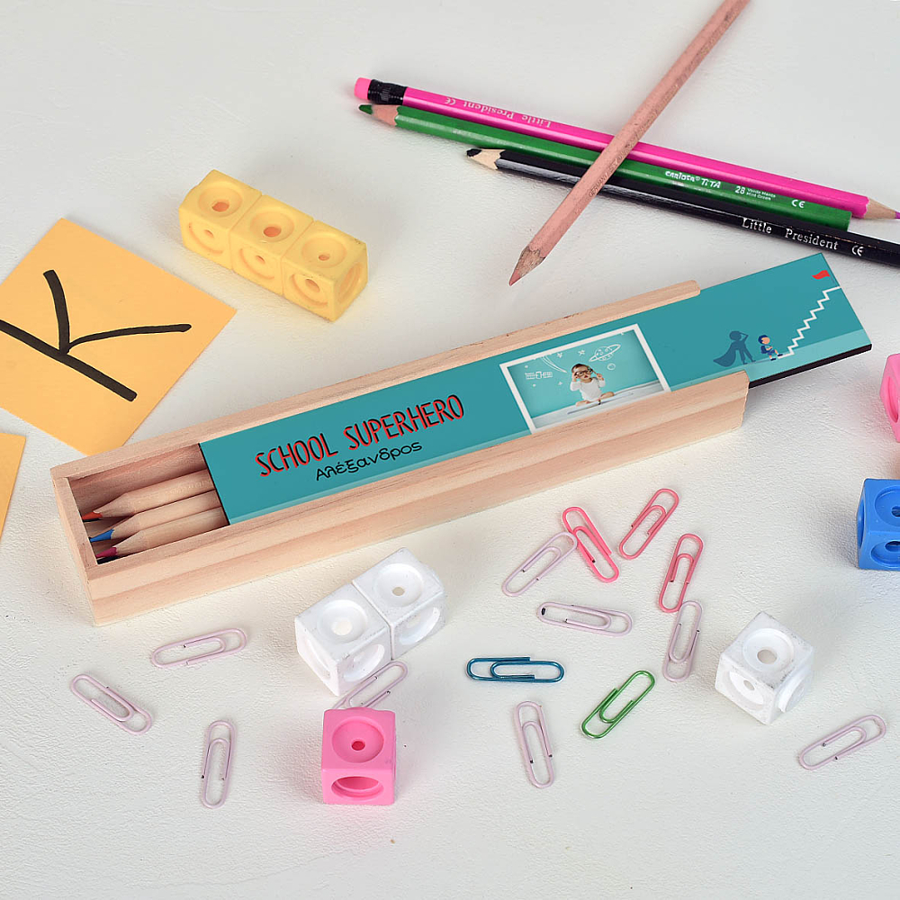 School Superhero - Κασετίνα Ξύλινη με Ξυλομπογιές Ξύλινη Κασετίνα με Ξυλομπογιές