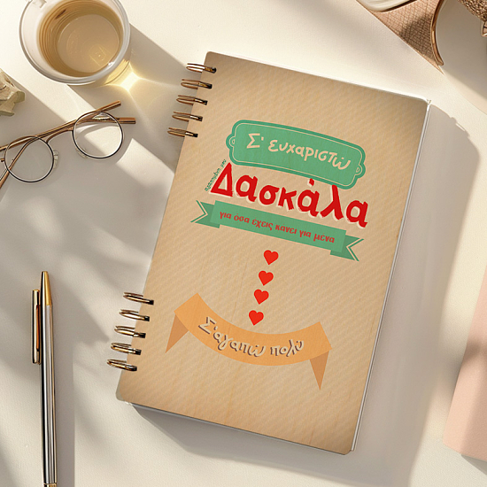 Σ'ευχαριστώ Δασκάλα - Ξύλινο Ημερολόγιο Ατζέντα Ξύλινο Ημερολόγιο Ατζέντα