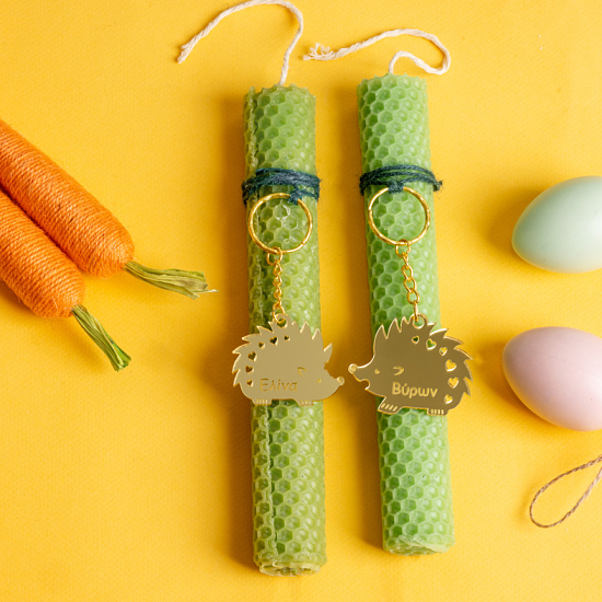 Σκατζοχοιράκια Plexi Glass - Διπλή Λαμπάδα Από Μελισσοκέρι Λαμπάδες Από Μελισσοκέρι με Set Μπρελόκ Plexiglass