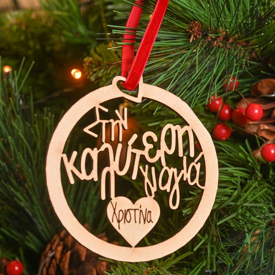 Το ξύλινο στολίδι θα το παραλάβεις σε κόκκινο βελούδινο πουγκάκι, έτοιμο να το δωρίσεις σε αυτούς που αγαπάς!