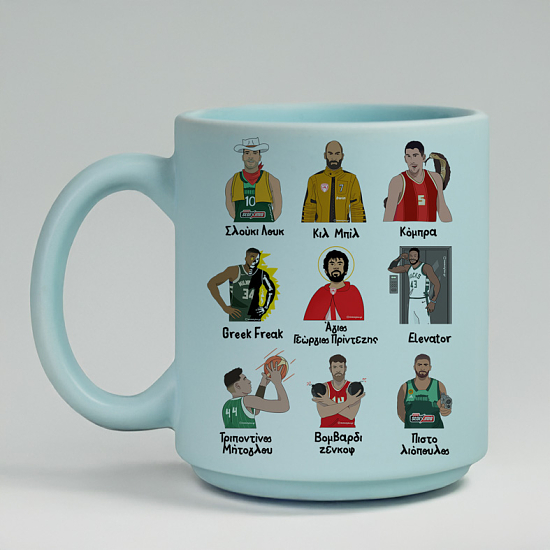 Ένα συλλεκτικό σχέδιο για κάθε φανατικό του ελληνικού μπάσκετ, διαθέσιμο σε κούπες, μπλούζες και πολλά ακόμα δώρα.🏀