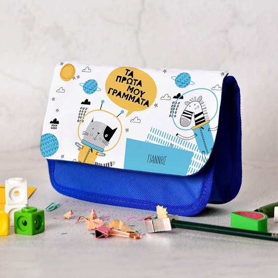 Σχεδίασε την δική σου υφασμάτινη σχολική κασετίνα με το όνομα σου και όποιο άλλο στοιχείο θέλεις και ξεχώρισε στη νέα σχολική χρονιά !Διαθέτει δύο μεγάλες θήκες με φερμουάρ για να βάλεις όλα όσα χρειάζεσαι.