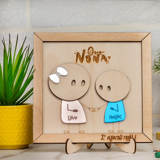• Ξύλινο περίγραμμα και ξύλινη βάση: Μπορεί να χαραχθεί με την αφιέρωση της επιλογής σας. Μια φράση, μια ημερομηνία, ή ένα ξεχωριστό μήνυμα που θα κάνει το δώρο σας πραγματικά ανεκτίμητο