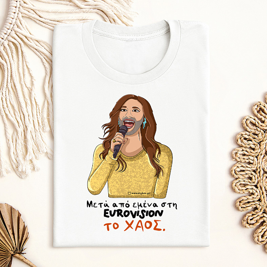 T-shirts από vegan οργανικό βαμβάκι με την ατάκα "Μετά από εμένα στη EUROVISION το ΧΑΟΣ.".