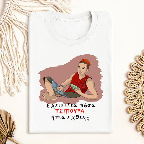 T-shirts από vegan οργανικό βαμβάκι με την ατάκα "Έχεις ιδέα πόσα ΤΣΙΠΟΥΡΑ ήπια εχθές;;;".
