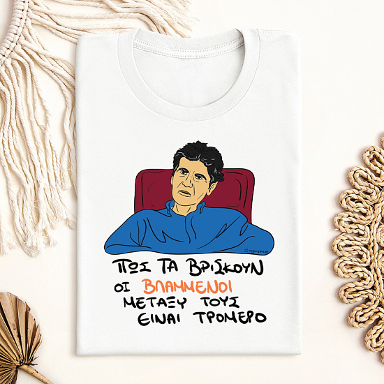 T-shirts από vegan οργανικό βαμβάκι με την ατάκα "ΠΩΣ ΤΑ ΒΡΙΣΚΟΥΝ ΟΙ ΒΛΑΜΜΕΝΟΙ ΜΕΤΑΞΥ ΤΟΥΣ ΕΙΝΑΙ ΤΡΟΜΕΡΟ".