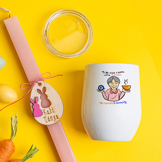 Ξεμάτιασμα Γιαγιάς - Λαμπάδα Με Κούπα Θερμός Λαμπάδα Με Ξύλινο Στολίδι Και Κούπα Θερμός 355ml