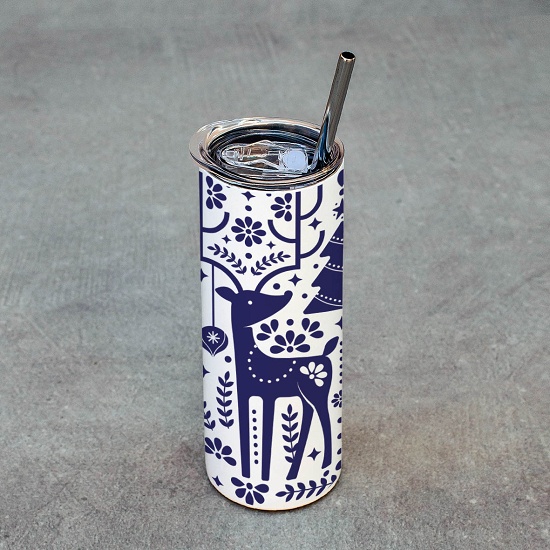 Xmas Deers - Ποτήρι Θερμός 600ml Ποτήρι Θερμός Με Καλαμάκι