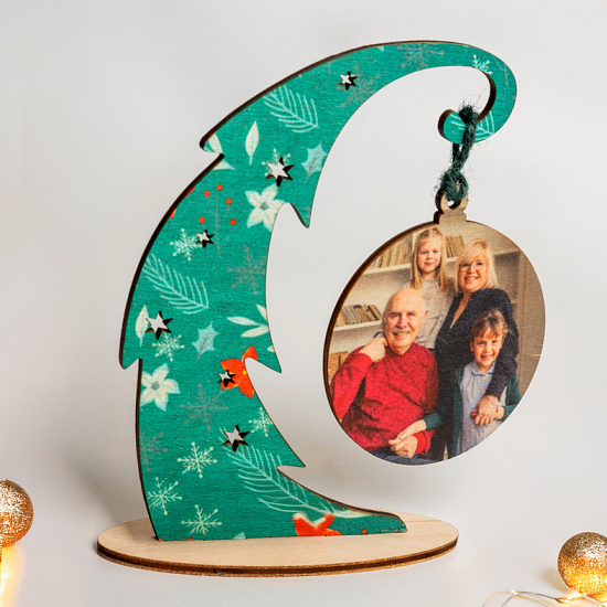 Το Ξύλινο Χριστουγεννιάτικο Δεντράκι με Φωτογραφία είναι φτιαγμένο από φυσικό ξύλο σημύδας και περιλαμβάνει βάση για στήριξη και κρεμαστό στολίδι με τη δική σου αγαπημένη φωτογραφία. Η εκτύπωση γίνεται απευθείας επάνω στο ξύλο, δημιουργώντας ένα προσωποποιημένο αναμνηστικό που θα μείνει για πάντα.