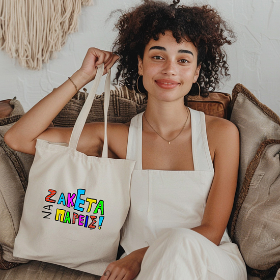 - Υφασμάτινη τσάντα με μακριά χερούλια σε φυσικό χρώμα