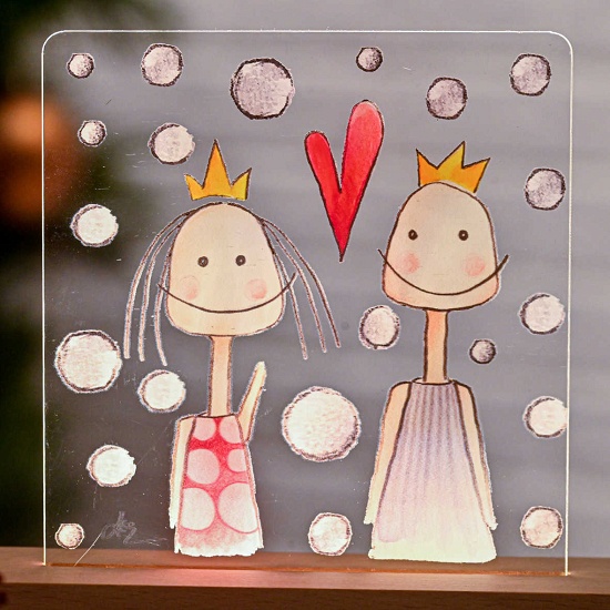 Επιτραπέζιο, χειροποίητο φωτιστικό με ξύλινη βάση led και εκτύπωση σε plexi glass με την φιγούρα ενός ζευγαριού. Προσωποποίησε το βάζοντας τα ονόματα σας!